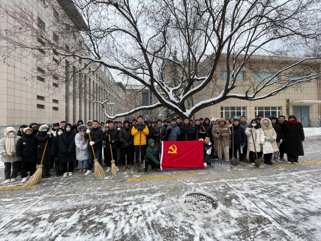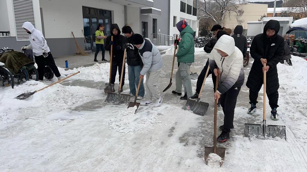 7个党支部的130余名研究生和本科生参与,上午9点30分左右,师生们手持铲雪工具,对行知广场东侧,科研楼,14号教学楼,文韬三和文韬八附近的场地进行了彻底的清扫。尽管天气寒冷,但同学们的热情却丝毫未减,他们的努力为校园带来了温暖和安全。同学们在活动中表现出极高的热情和能量。一名同学表示:“这不仅是一次服务校园的机会,也是我们实践社会责任感和集体主义精神的好时机。”