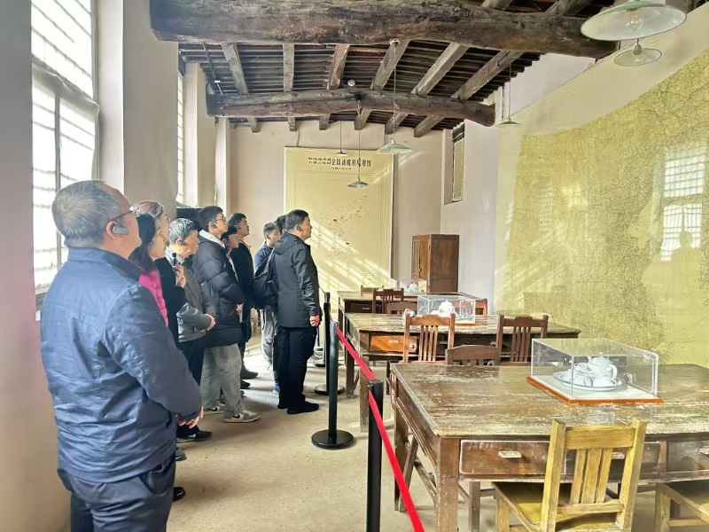 在中共中央旧址,一间间土墙泥顶的小平房,一件件朴素整洁的办公生活用品,再现了老一辈革命家在西柏坡时期的艰苦岁月。大家先后参观了毛泽东等领导人旧居、军委作战室、中国共产党七届二中全会会址,近距离感受老一辈革命家在西柏坡时期艰苦卓绝的奋斗历程,缅怀先辈们崇高的革命精神。