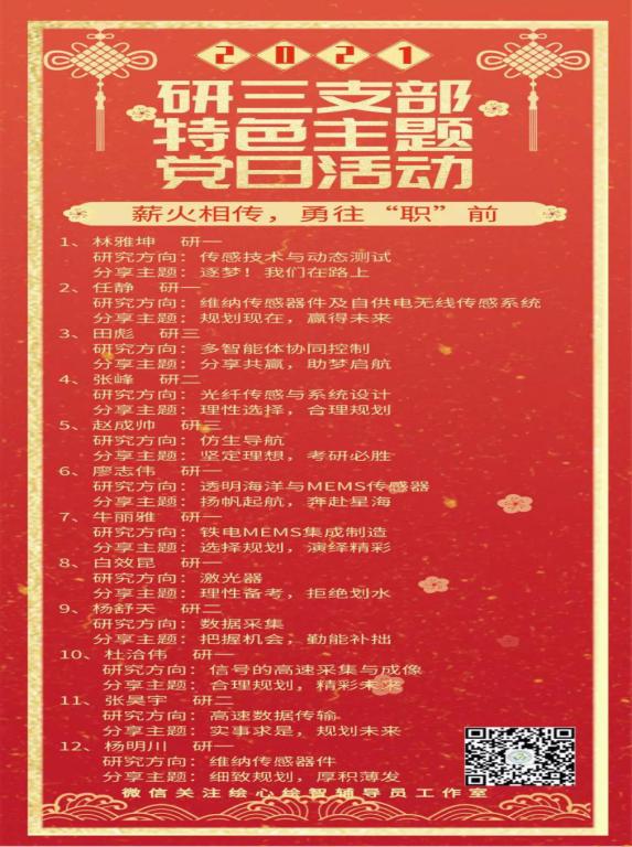 研究生第三党支部12位党员同志,对即将升入大四阶段的2018级,共495名同学以“薪火相传,勇往‘职’前”为主题,开展了四场学涯经验分享会。会上,贾涛等研究生党员们围绕同学们非常关注的“科研生活、考研保研、出国深造、就业去向”四个部分进行了分享。大家讲述自己在实验室遇到的各种趣事,分享自己在科研道路上的快乐与艰辛,交流自己在考研或保研方面的经验,并督促大家尽早确定目标、制定计划、踏实准备、认真对待,以提高求职升学路上自己的竞争力。