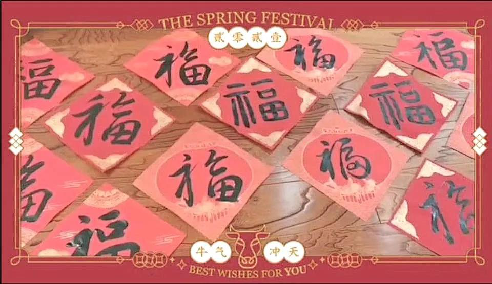 慰问前,绘心绘智辅导员工作室李红霞老师精心准备了“福”字,祝福所有的学生牛年能牛气冲天,“发论文做课题一气呵成,找对象早毕业万事如意“。