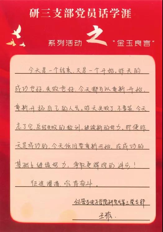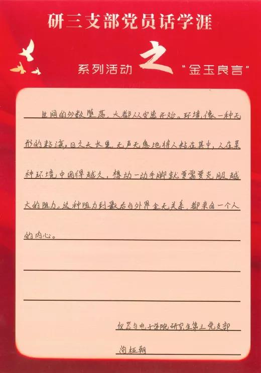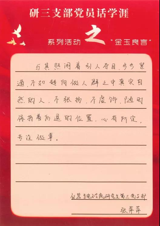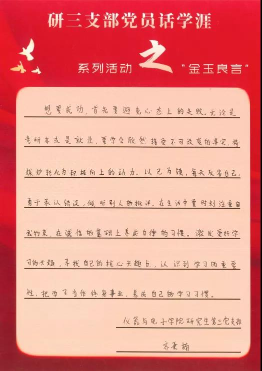 党支部全体党员开展了“金玉良言”主题活动,每位党员为低年级的同学书写学业上的正向的建议和经验指导。