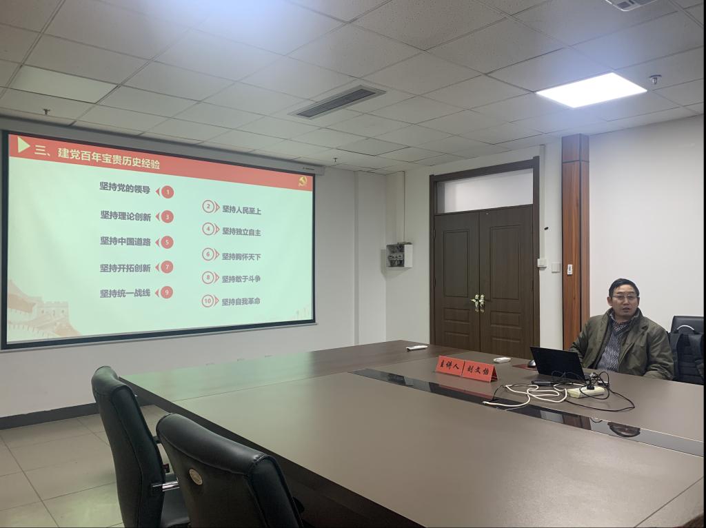 会议伊始,刘院长向党支部全体党员同志分享了近期自己学习会议精神的心得体会,并从“党的百年奋斗重大成就”,“中国共产党百年奋斗的历史意义”,“建党百年宝贵历史经验”和“牢记中国共产党使什么、要干什么的根本问题”四个方面,学习了中国共产党第十九届六中全会的重大意义。