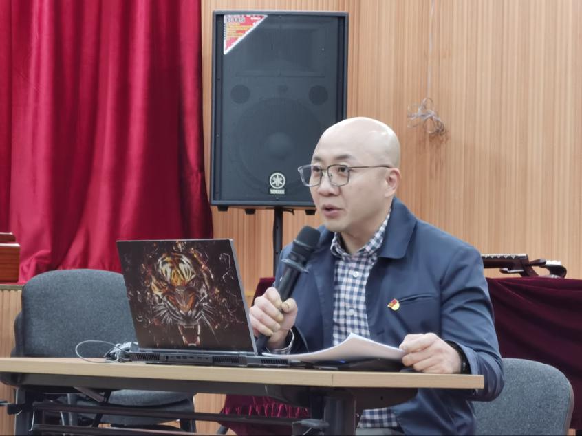演奏硕士、美国中田纳西州立大学访问学者田军教授。讲座中,田教授用琵琶音乐的形式呈现党的百年非凡奋斗史,抒写了红色记忆。他将自己从事琵琶事业多年的感悟和经验进行梳理、总结,站在中国最具代表性的民族乐器琵琶音乐文化视角,围绕中国共产党人的精神谱系,以中华优秀传统文化的人文精神为底蕴,立足音乐艺术教育的责任担当,以讲演结合的形式,精选百年经典力作,现场示范,将历史性与艺术性高度融合,回顾历史、跨越时空,赓续中华文化血脉,凝聚民族音乐力量,展现琵琶音乐中的中国精神。