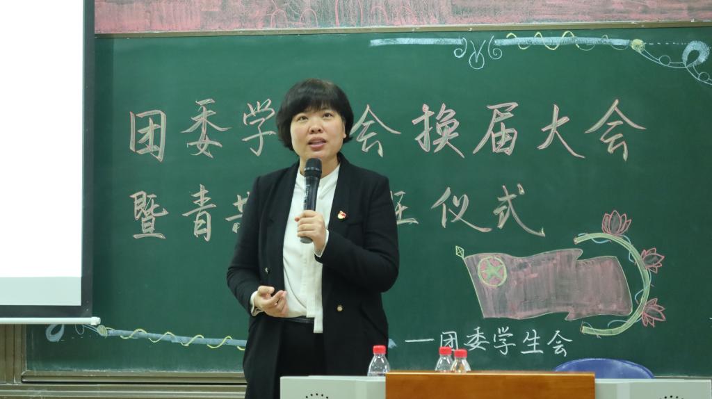 在新任学生会主席张智杰的带领下,新一届学生干部们进行了激昂而真诚的集体宣誓,展现了自己对未来工作的信心与决心,展示了新一届学生干部饱满的工作热情。随后新一届团委副书记马志诚对新一年的工作进行了展望,对未来工作进行了系统详尽的工作安排。