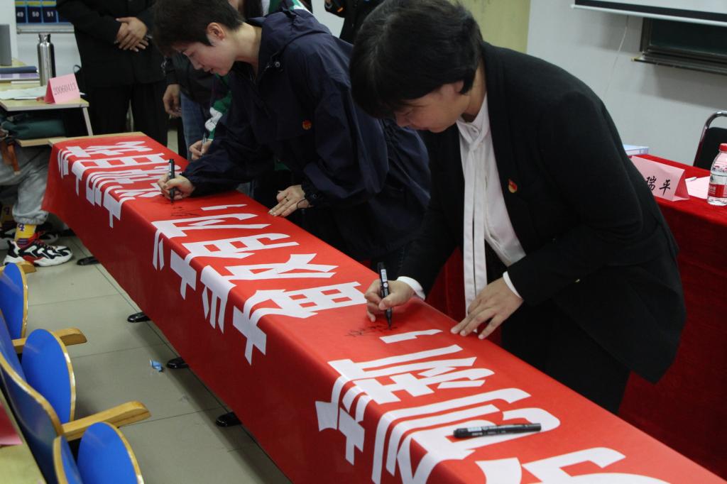 党委副书记杜瑞平为学生干部们颁发聘书。老师们与新老学生干部一同在大会横幅上签字,通过这一仪式将精神凝聚在一起,将所有学生干部的心紧靠在一起。