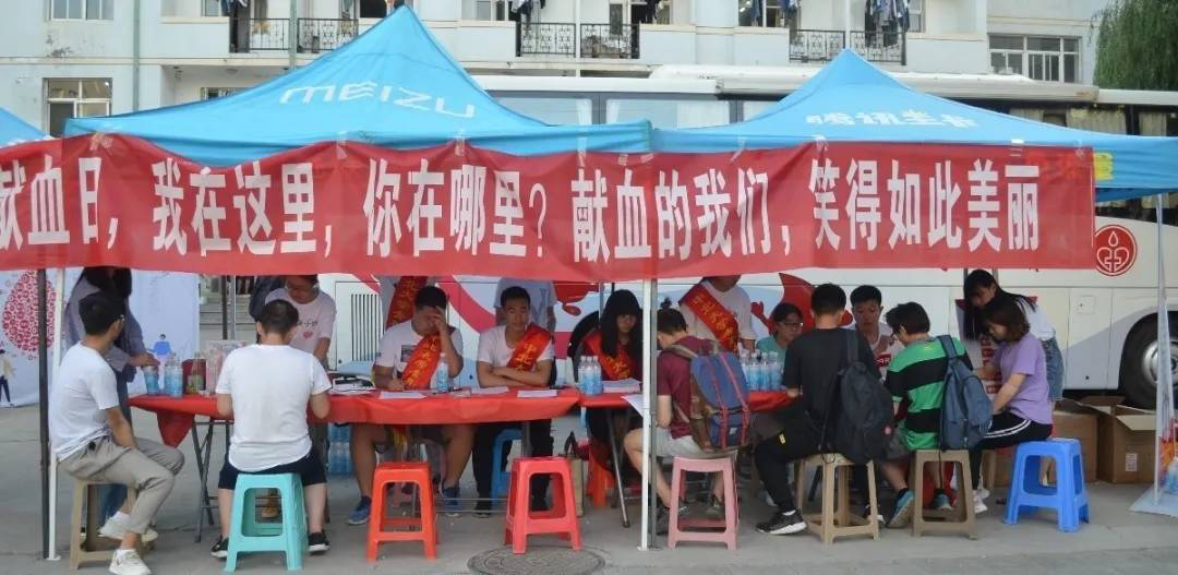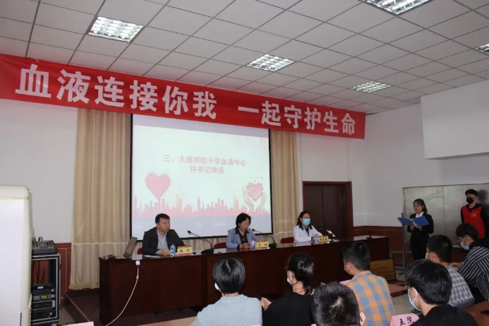 团委青志部成员积极进行宣传,并协助太原市红十字血液中心工作人员进行献血前的信息采集工作。