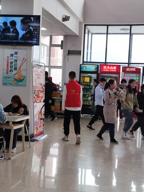 活动期间,志愿者从疫情防控与维持秩序两方面入手,每班次分为两组,一组志愿者在餐厅门口提醒同学们佩戴口罩,排队进入餐厅,避免拥挤;二组志愿者在餐厅内维持餐厅秩序,整理餐桌,提醒同学们不要浪费食物,为同学们创造良好的用餐环境。在志愿者们日复一日的努力下,餐厅秩序实现质的飞跃。
