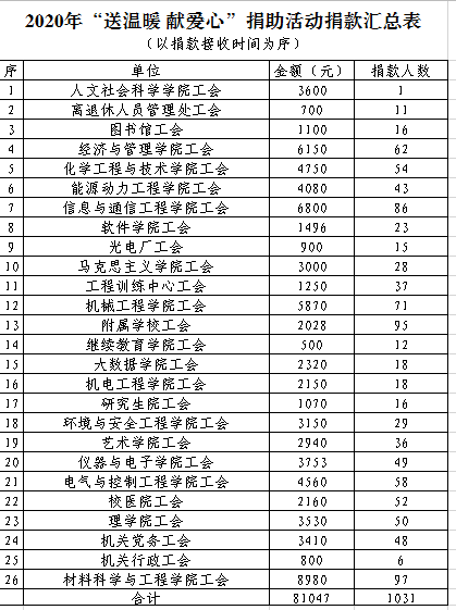工会高度重视,认真领会习近平总书记“聚焦脱贫攻坚,聚焦特殊群众,聚焦群众关切”的批示精神,向院党委汇报后,广泛宣传,积极行动,营造浓厚的奉献爱心、回报社会氛围。捐赠坚持自愿原则,共计49名老师参与捐款,捐款总额3753元,人均捐款77元。