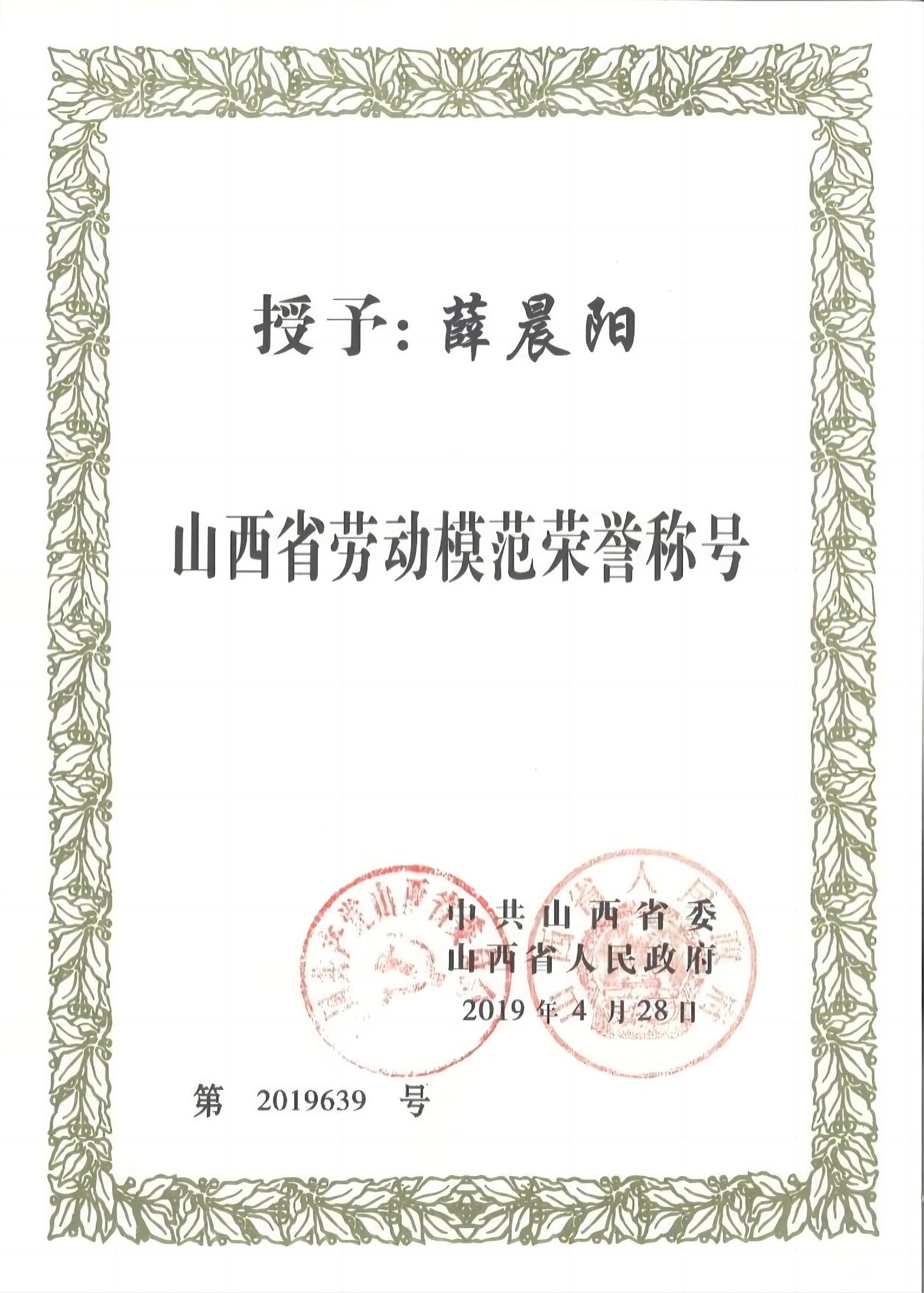 山西省五一劳动奖章获得者:薛晨阳