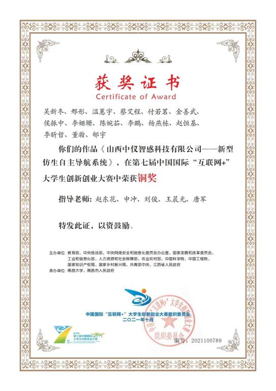 《山西中仪智感科技有限公司——新型仿生自主导航系统》获第七届中国国际“互联网+”大学生创新创业大赛铜奖