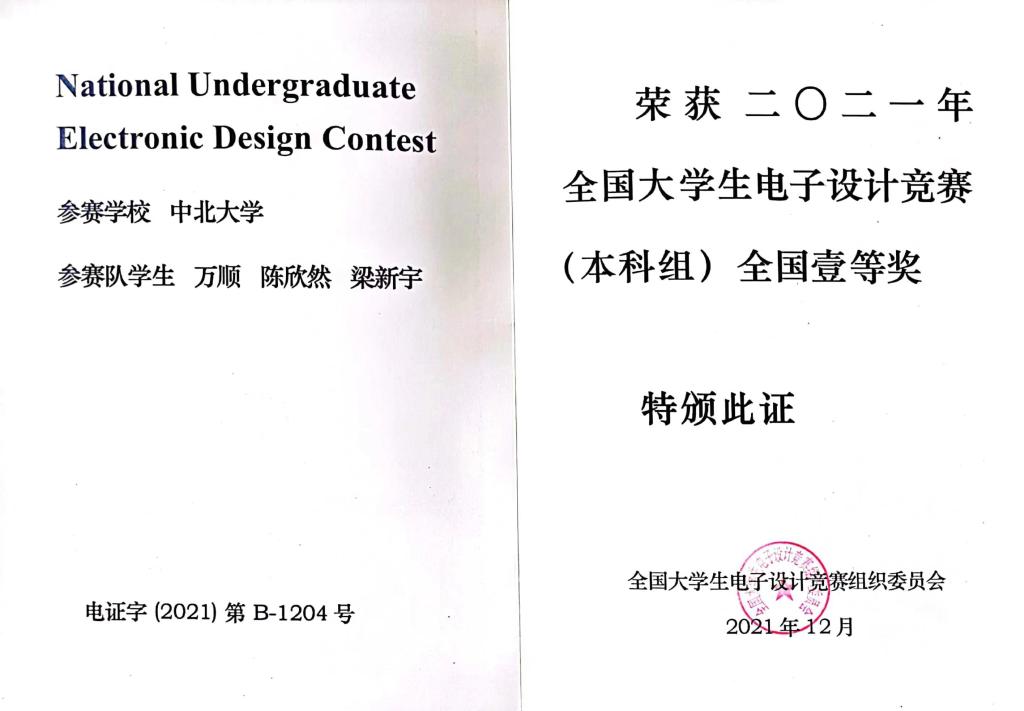 全国电子设计竞赛(本科组)全国一等奖:万顺、陈欣然、梁新宇三位同学获全国大学生电子设计竞赛(本科组)全国一等奖