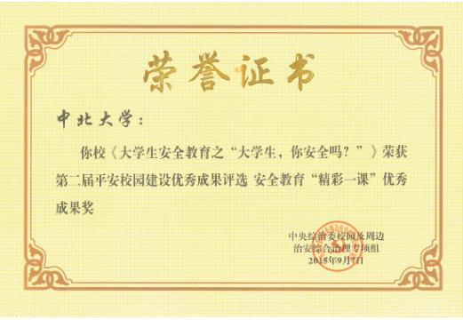 杜瑞平2015年9月获第二届平安校园建设优秀成果评选安全教育“精彩一课”优秀成果奖